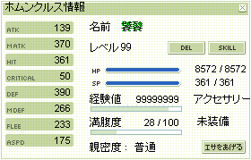 圧倒的にHITが足りないのでクリティカルで何とかしようと、武器は+7白銀のショーテル(c未挿し)とコボクリ1個とHITも補いたいのでガラナキャンディーも使ってもmiss連発したりするけれどホムが頑張ってくれたのでモリモリ育ちました。