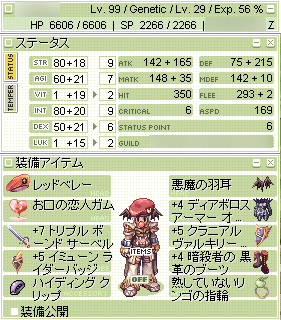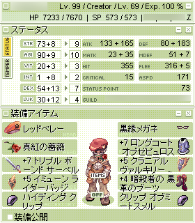 直前のステと装備はこんな感じ。ステはラウドボイス込み。